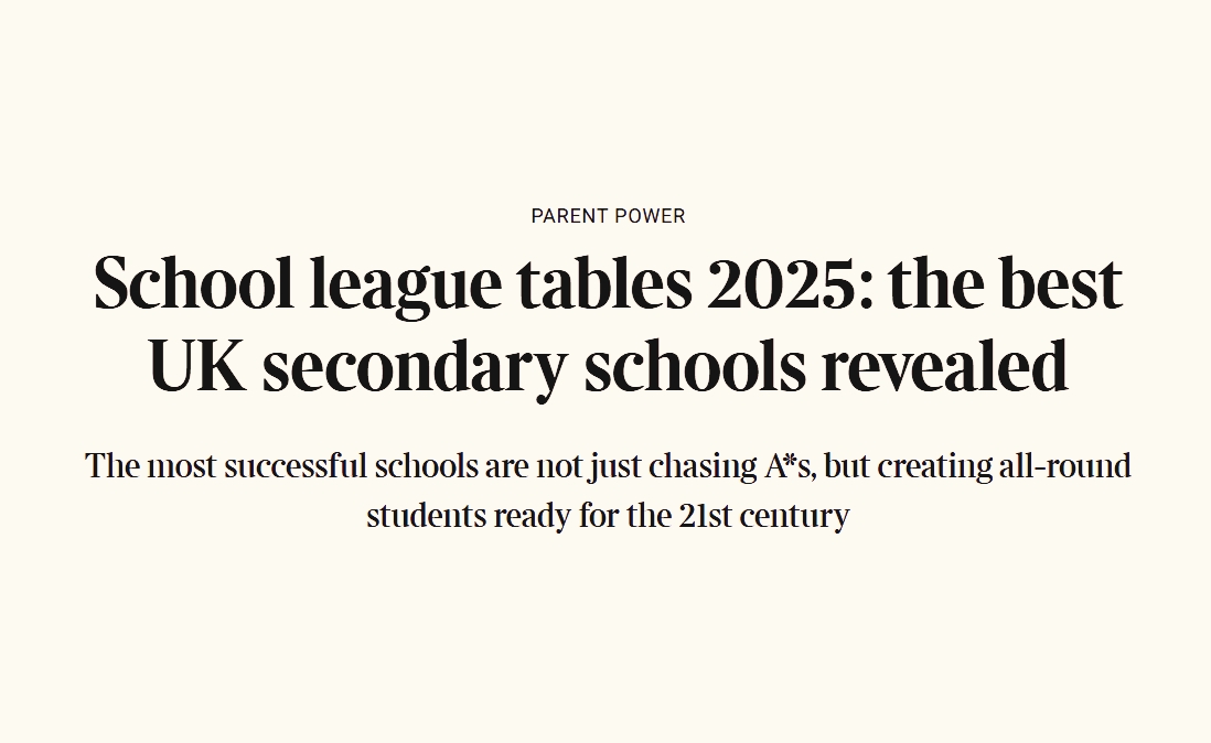《星期日泰晤士报》近日公布了其最新英国私立学校排行榜——《家长力量2025年学校指南》(Parent Power Secondary School of the Year 2025)。